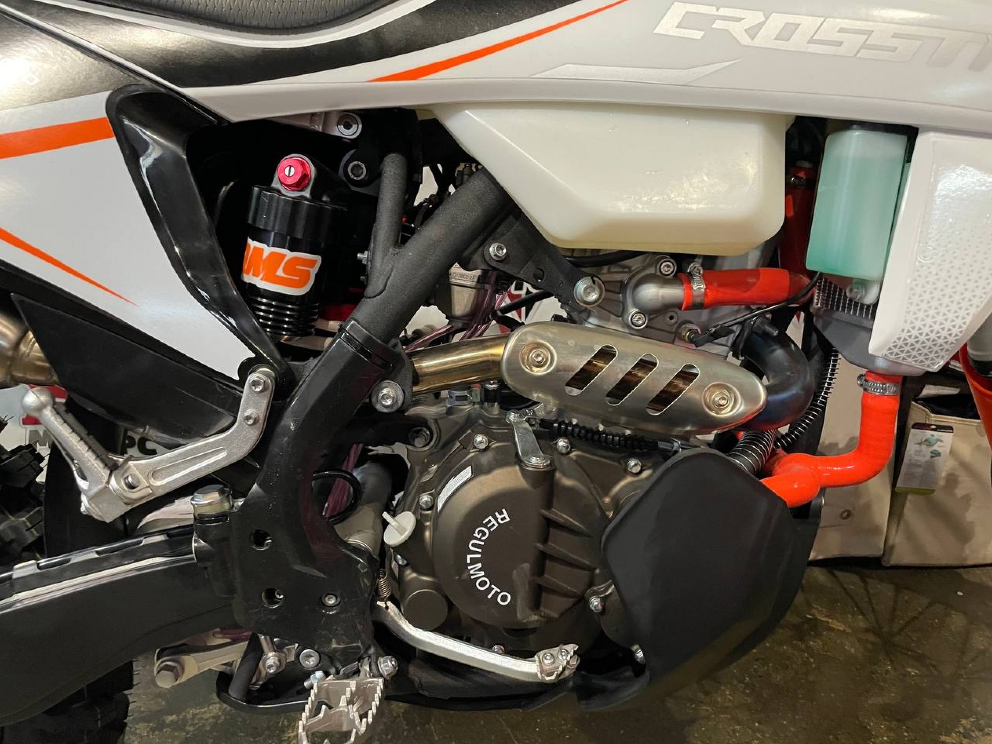 В мощной раме стоит модернизированная версия популярного одноцилиндрового мотоциклетного мотора 174MN-5 (NB300) производства компании Zongshen. Форсированный двигатель с 6-ступенчатой коробкой передач отличают выросший порог максимальной мощности, больший крутящий момент в диапазоне низких оборотов и более производительная система охлаждения. В тракте подготовки топливной смеси работает карбюратор PWK34 производства компании Nibbi Racing. Среди других особенностей подбора компонентов Regulmoto Crosstrec 300 необходимо отметить: